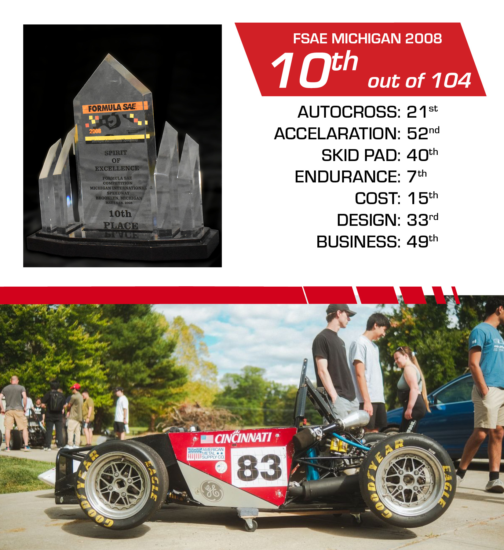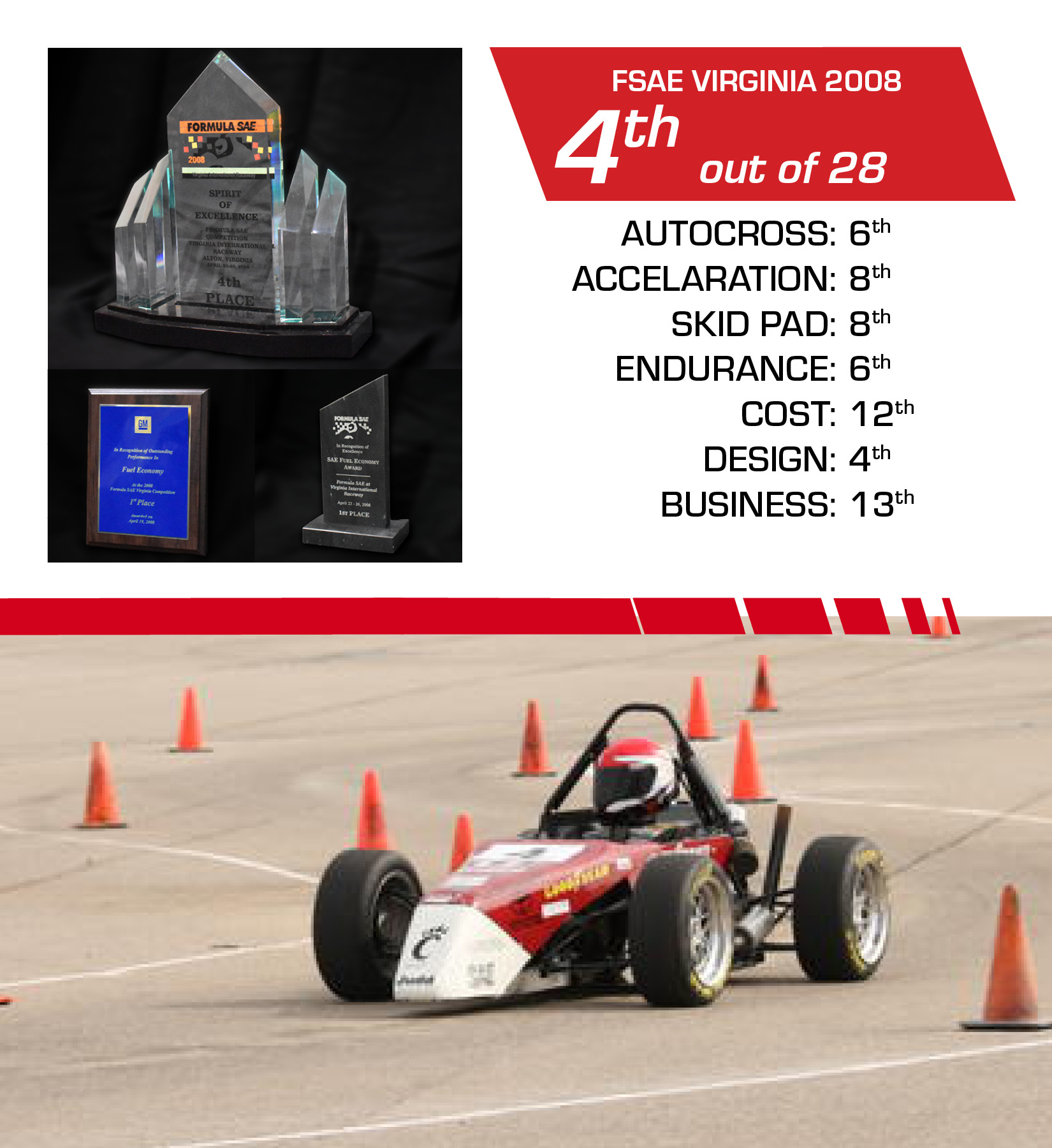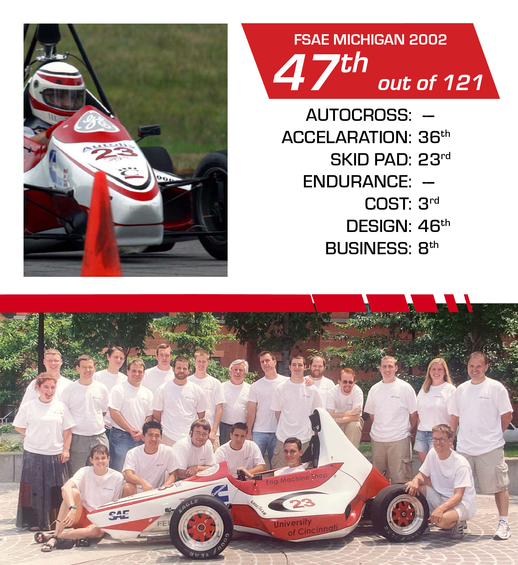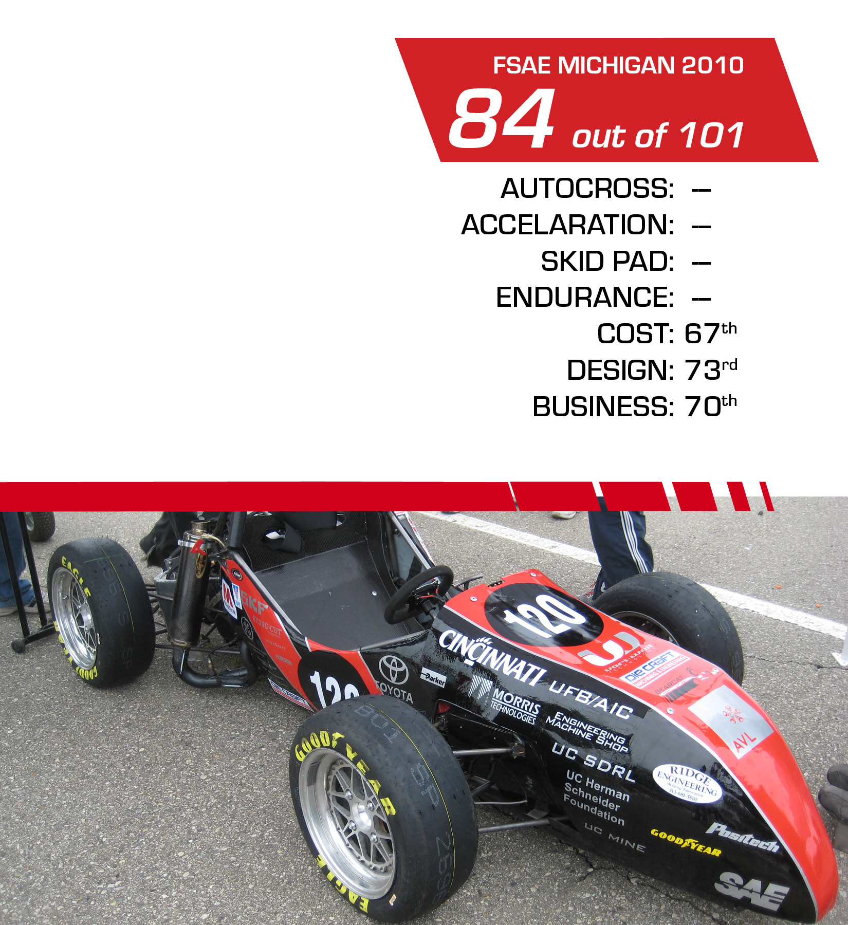 We are lucky to have started before FSAE was around and attended the first competiton but unfortunately, we don't have any documentation accessible to students currently on the team. If you know any results or have images not listed, please feel free to send them our way! (bcms@ucmail.uc.edu)